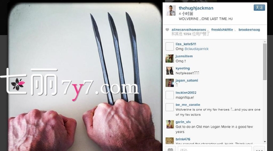 以X战警中金刚狼一角而被国内外影迷熟知的好莱坞男星休·杰克曼,在INS上发布了一张照片“WOLVERINE ...ONE LAST TIME. HJ”,疑指在2017年3月3日上映的第三部《金刚狼》是最后一次饰演此角色。