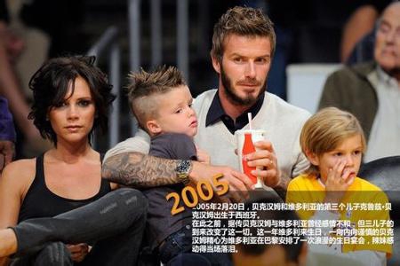 1998年1月,贝克汉姆与维多利亚宣布订婚。1999年3月4日,维多利亚为贝克汉姆生下大儿子布鲁克林。1999年7月4日,两人正式举行婚礼。两人共育有三个儿子一个女儿。