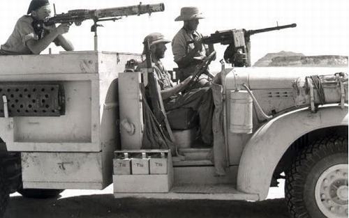 上图就是LDRG的战斗车辆,李老爷子当年就是跳上装着机关枪的雪佛兰,顶着撒哈拉沙漠的烈日在纳粹敌后开上几百公里,潜进机场把德吹战斗机炸个稀巴烂,留下残钢废铁和一堆躺在血泊里的德国鬼子,苦苦思索是什么要了他们的命。哦对了,被炸得彻底服气的意大利军把LDRG称为“幽灵巡逻队”。