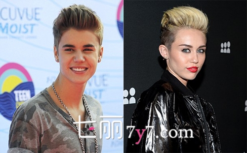 左:贾斯汀·比伯(Justin Bieber) 右:麦莉·赛勒斯(Miley Cyrus)