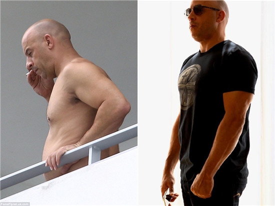 不过之前网上曝光一组范·迪塞尔变胖的照片,网友质疑范·迪塞尔身材走样怎么拍电影,不过近日范·迪塞尔霸气回应上周二被拍到大肚照片,直接上传新照证明自己好身材依旧。