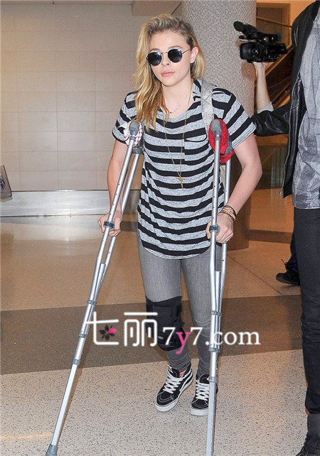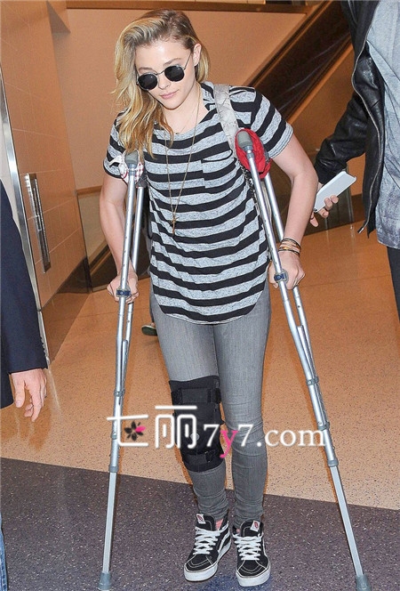 据美国娱乐八卦网12月18日报道,日前,“海扁萝莉”科洛·莫瑞兹(ChloeMoretz)手拄拐杖腿带护膝现身洛杉矶国际机场,似乎受伤了,目前还不知道受伤原因。
