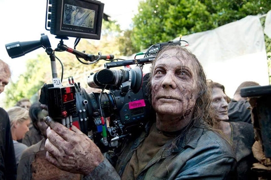 在紧张的剧情和让人血脉膨胀的故事情节背后,是一个欢乐的剧组辛苦的付出。众所周知第六季中的行尸将达到前五季都没达到的数量,成千上万个行尸不是那么容易凑齐的,所以导演竟然亲自上阵演起了行尸,以后大家在看剧的同时还可以找找导演,说不定就在哪个角落啃肉!