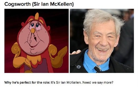 迪士尼真人版《美女与野兽》由比尔·康顿执导,史蒂夫·奇波斯基担任编剧,艾玛·沃特森饰演贝儿公主。伊恩·麦克莱恩爵士将在真人版《美女与野兽》里扮演座钟总管,他近日表示自己根本就没想到跟迪士尼签约后,周围好友纷纷表示极其想看,期望值远远超过了他继《魔戒》后在《霍比特人》里再演甘道夫。
