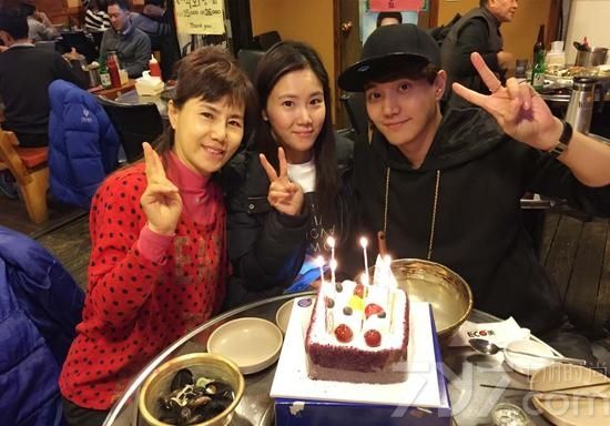 至上励合组合成员、天天向上的主持人之一小五金恩圣,于1月3日回国入伍,让无数的粉丝和电视观众感到十分不舍。近日,小五在微博中晒出了回国后与妈妈姐姐的聚餐全家福,照片中三人坐在韩式餐馆里,面前摆着插着蜡烛的小蛋糕。而妈妈和姐姐都面容清秀温柔,分为温馨有爱。网友们也纷纷留言,称小五家族基因优良。