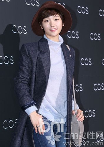 何穗最新街拍,灰色毛衣+墨绿色光泽感半裙,文艺慵懒,少女感十足。马海毛毛衣来自H&M,手提包和粉色毛拖鞋均来自Gucci,半裙来自Tibi 2016