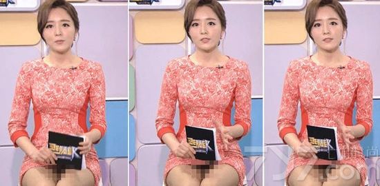 韩国一个网络社区日前出现了一篇题为《节目主持人走光》的帖子,并附有相关照片。这一消息迅速传遍网络。照片中,该女主播坐在椅子上,连衣裙长度只到大腿,走光十分明显。
