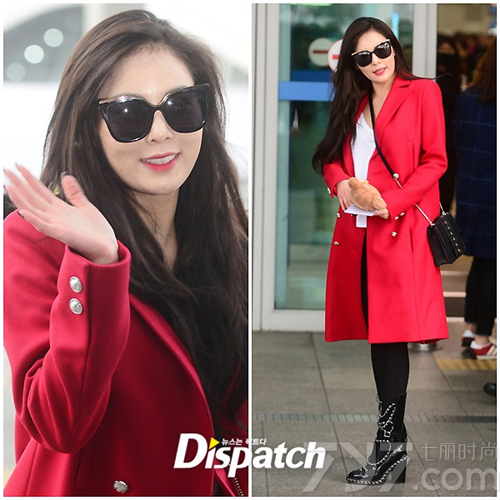 22日上午,黄致列、4Minute泫雅因湖南卫视《元宵喜乐会》行程经由仁川机场离开韩国,黄致列面带暖男笑容与粉丝互动,展现出亲切温柔的魅力。而泫雅以一袭亮眼红装出现,搭配时尚前卫的短靴,展现出不俗的时尚品味,成为瞩目的焦点。