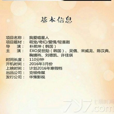 南韩团体EXO出道以来受到大批粉丝欢迎,人气始终居高不下,团员们影歌视三栖演艺事业版图不断扩张。近来有消息指出,EXO成员世勋将成为爱情电影《我爱喵星人》的男主角,与陈汉典等人一同合作。