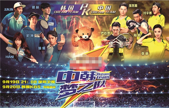 由深圳卫视及耀客传媒、携手韩国KBS共同打造的跨国类明星体育竞技节目《中韩梦之队》将于9月19日21:08深圳卫视播出,9月20日在韩国KBS播出,届时中国观众将和韩国观众同步收看。