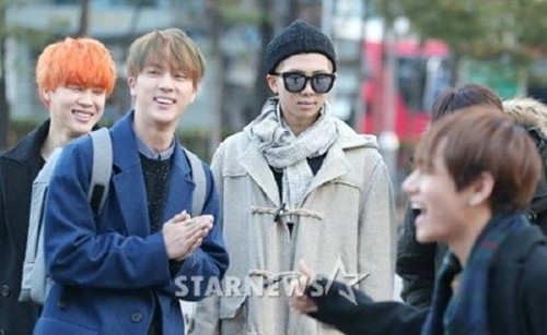 4日上午,防弹少年团前往汝矣岛KBS新馆公开大厅参加KBS《音乐银行》彩排。另外,今日还是成员金硕珍的24岁生日。