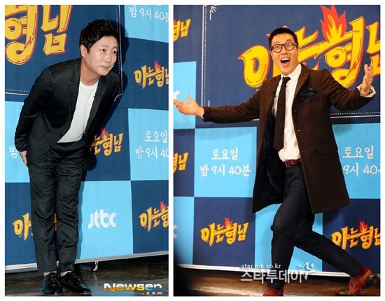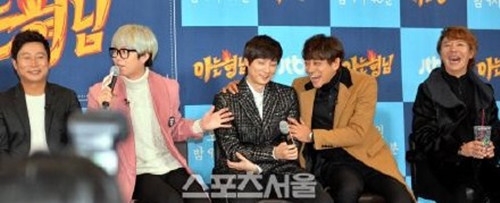4日下午,金希澈、姜虎东、李秀根、金永哲、前篮球选手徐章勋等出席了JTBC新综艺《认识的大哥》制作发表会。