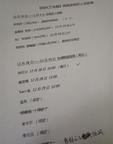 此前,据爆料,少女时代泰妍、EXO朴灿烈将会作为嘉宾参加中国版《拜托了冰箱》的韩国录制,对此,节目组方面相关人员回应表示“尚未确定,节目具体录制嘉宾还在紧张协商当中。”