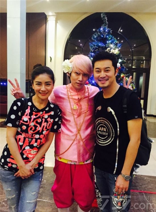 1月20日晚,沙溢在微博上晒出与妻子胡可、韩国男团SUPER JUNIOR成员金希澈的合照,并附言“金希澈好美啊”。照片中,金希澈头戴大花做出娇媚的动作十分搞笑。