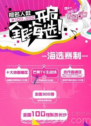 日前,《超级女声》官方宣布,报名阶段“十万梦想众筹”目标达成,引起广泛讨论关注。而据此前公布的大体赛制,在报名阶段完成“十万梦想众筹”后,将立即开展全国范围内的地面海选赛程。
