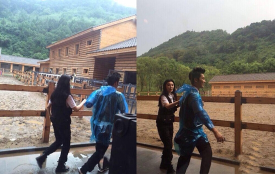 近日,网友上传一组范冰冰和李晨在农庄小跑的照片。照片中,穿着雨衣的李晨拖着身着制服的范冰冰的手,浪漫慢跑,颇有拍摄偶像剧的架势。