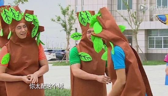 由于节目组设定的“环保”主题,当期六位男明星清一色地换上了树木造型的服装。身为特邀嘉宾的黄子韬一出场便指着杨坤哈哈大笑。正当大家一头雾水,黄子韬强忍着笑道出缘由:“你太配这个树了,你就跟个树一样!”本来见黄子韬用手指着自己就有些不爽,此刻的杨坤不禁脸色骤变,回应道:“你是小树,我是老树。”言下之意是身为后辈的黄子韬不该对自己不敬。