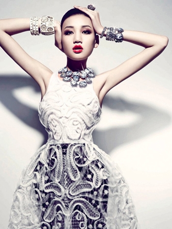 何穗最新街拍,灰色毛衣+墨绿色光泽感半裙,文艺慵懒,少女感十足。马海毛毛衣来自H&M,手提包和粉色毛拖鞋均来自Gucci,半裙来自Tibi 2016