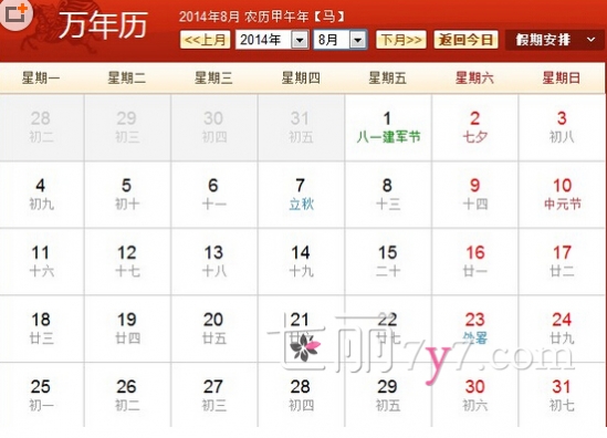 2014年阳历08月02日,也就是农历七月初七,星期六,是一年一度的七夕情人节。