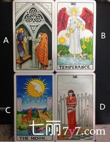 随着时间的推移,两个相爱的人距离会越来越远,更会开始厌倦对方,这就是爱情的瓶颈期,如何才能避免这样的局面呢?如果你不知道该怎么做,不如看看下面的这道测试题吧,从四张牌中选择一张自己最喜欢的,然后揭晓答案,它能让你清楚明白自己的问题所在!