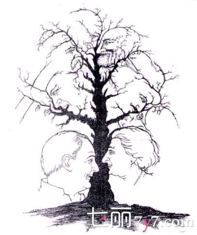 根据心理学测验,以下这幅图,这颗看似不起眼的快要枯死的树里边影藏着许多的人脸,那么你能从这棵树上看到几张人脸呢?
