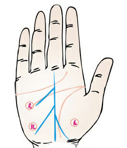 这种手纹的人才能非凡,如果这三条延伸出来的纹路多杂乱或者太多分叉,表示这人,命里多有波折,不能顺利的成功。杂纹越多的人,说明烦恼越多,志向远大但是有时却少了节操。