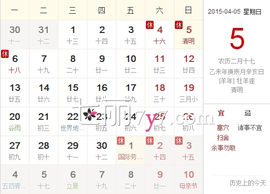 2015清明节放假安排