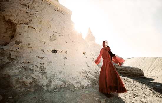 何穗最新街拍,灰色毛衣+墨绿色光泽感半裙,文艺慵懒,少女感十足。马海毛毛衣来自H&M,手提包和粉色毛拖鞋均来自Gucci,半裙来自Tibi 2016