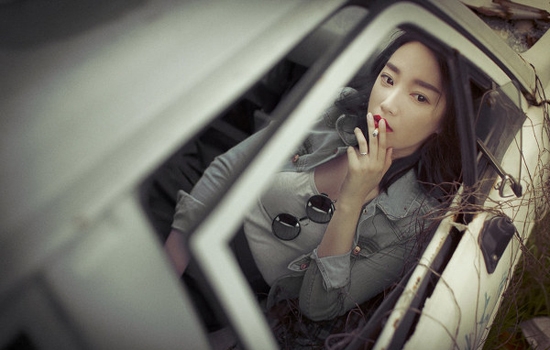 何穗最新街拍,灰色毛衣+墨绿色光泽感半裙,文艺慵懒,少女感十足。马海毛毛衣来自H&M,手提包和粉色毛拖鞋均来自Gucci,半裙来自Tibi 2016