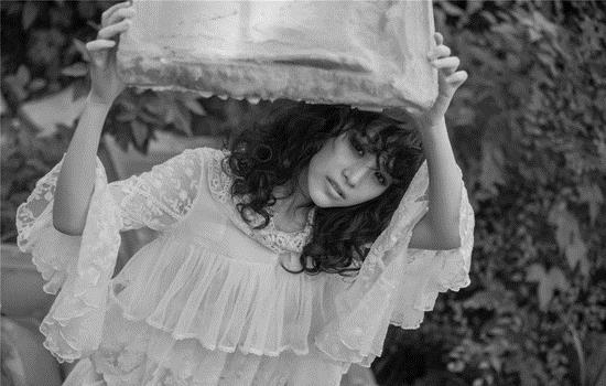 何穗最新街拍,灰色毛衣+墨绿色光泽感半裙,文艺慵懒,少女感十足。马海毛毛衣来自H&M,手提包和粉色毛拖鞋均来自Gucci,半裙来自Tibi 2016