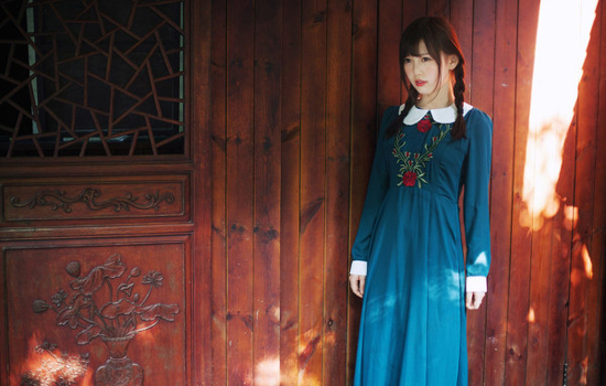 何穗最新街拍,灰色毛衣+墨绿色光泽感半裙,文艺慵懒,少女感十足。马海毛毛衣来自H&M,手提包和粉色毛拖鞋均来自Gucci,半裙来自Tibi 2016