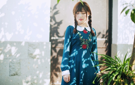 何穗最新街拍,灰色毛衣+墨绿色光泽感半裙,文艺慵懒,少女感十足。马海毛毛衣来自H&M,手提包和粉色毛拖鞋均来自Gucci,半裙来自Tibi 2016