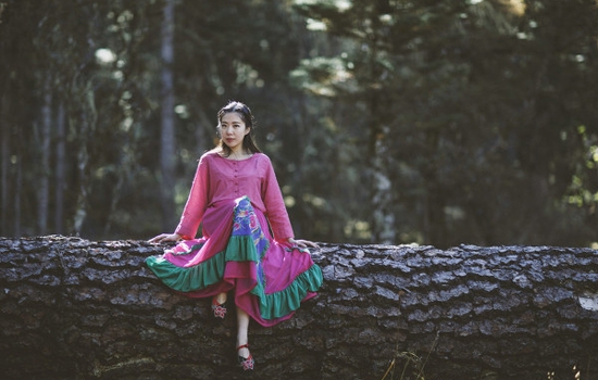 何穗最新街拍,灰色毛衣+墨绿色光泽感半裙,文艺慵懒,少女感十足。马海毛毛衣来自H&M,手提包和粉色毛拖鞋均来自Gucci,半裙来自Tibi 2016
