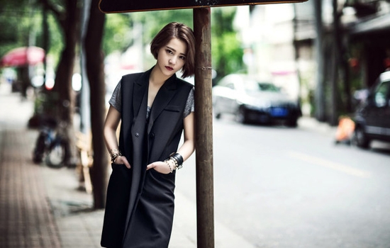 何穗最新街拍,灰色毛衣+墨绿色光泽感半裙,文艺慵懒,少女感十足。马海毛毛衣来自H&M,手提包和粉色毛拖鞋均来自Gucci,半裙来自Tibi 2016