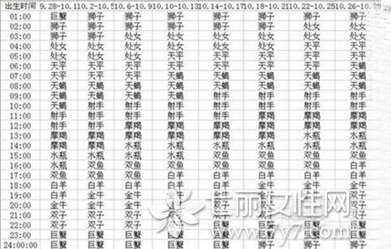 天蝎座是10月24日~11月22日,根据这个时间以及自己出生时间推算出自己上升星座,具体如下图。