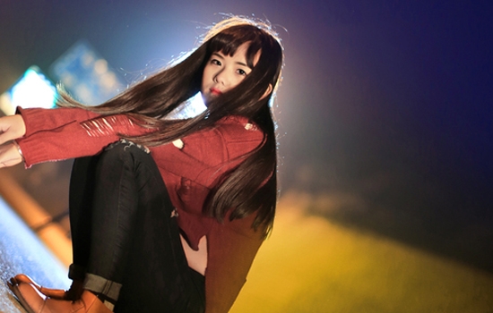 何穗最新街拍,灰色毛衣+墨绿色光泽感半裙,文艺慵懒,少女感十足。马海毛毛衣来自H&M,手提包和粉色毛拖鞋均来自Gucci,半裙来自Tibi 2016