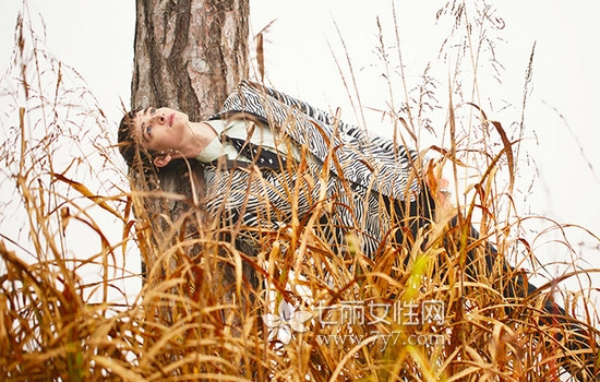 何穗最新街拍,灰色毛衣+墨绿色光泽感半裙,文艺慵懒,少女感十足。马海毛毛衣来自H&M,手提包和粉色毛拖鞋均来自Gucci,半裙来自Tibi 2016