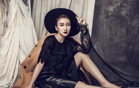 何穗最新街拍,灰色毛衣+墨绿色光泽感半裙,文艺慵懒,少女感十足。马海毛毛衣来自H&M,手提包和粉色毛拖鞋均来自Gucci,半裙来自Tibi 2016