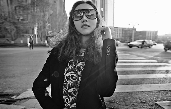 何穗最新街拍,灰色毛衣+墨绿色光泽感半裙,文艺慵懒,少女感十足。马海毛毛衣来自H&M,手提包和粉色毛拖鞋均来自Gucci,半裙来自Tibi 2016