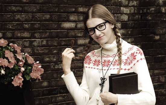 何穗最新街拍,灰色毛衣+墨绿色光泽感半裙,文艺慵懒,少女感十足。马海毛毛衣来自H&M,手提包和粉色毛拖鞋均来自Gucci,半裙来自Tibi 2016