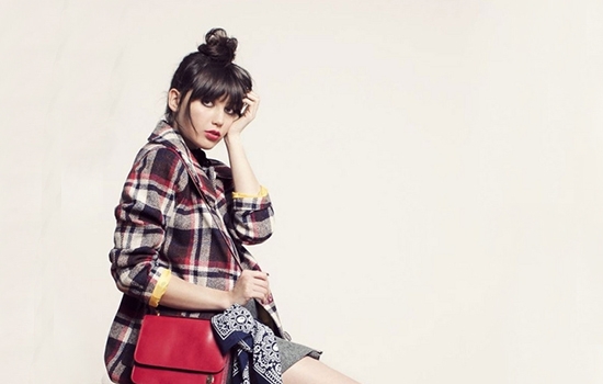 何穗最新街拍,灰色毛衣+墨绿色光泽感半裙,文艺慵懒,少女感十足。马海毛毛衣来自H&M,手提包和粉色毛拖鞋均来自Gucci,半裙来自Tibi 2016