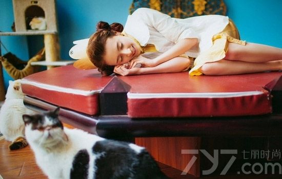 何穗最新街拍,灰色毛衣+墨绿色光泽感半裙,文艺慵懒,少女感十足。马海毛毛衣来自H&M,手提包和粉色毛拖鞋均来自Gucci,半裙来自Tibi 2016