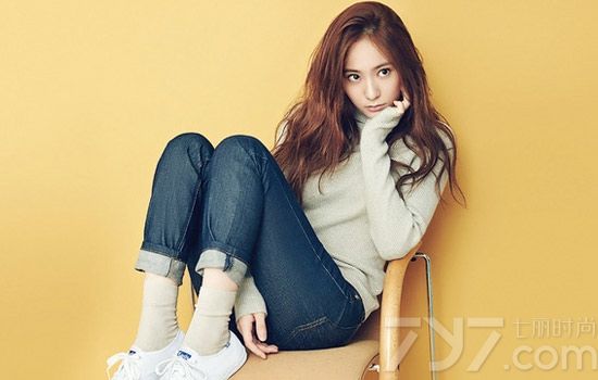何穗最新街拍,灰色毛衣+墨绿色光泽感半裙,文艺慵懒,少女感十足。马海毛毛衣来自H&M,手提包和粉色毛拖鞋均来自Gucci,半裙来自Tibi 2016