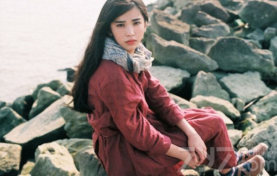 何穗最新街拍,灰色毛衣+墨绿色光泽感半裙,文艺慵懒,少女感十足。马海毛毛衣来自H&M,手提包和粉色毛拖鞋均来自Gucci,半裙来自Tibi 2016