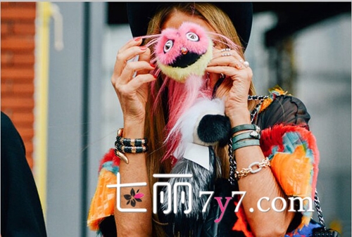 何穗最新街拍,灰色毛衣+墨绿色光泽感半裙,文艺慵懒,少女感十足。马海毛毛衣来自H&M,手提包和粉色毛拖鞋均来自Gucci,半裙来自Tibi 2016