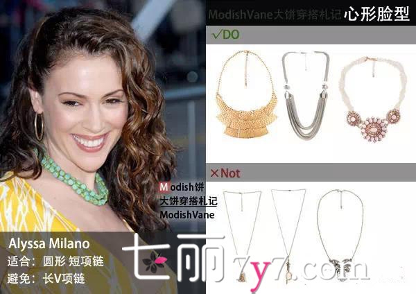 其实对于心形脸来说,搭配任何项链都是无敌的,脸型好到没话说,不过由于下巴比较尖,还是比较适合搭配一些圆形、短项链,通过一些贴颈式的项链,比如说短的梨形、三角形坠子项链就是非常不错的选择,这样能够让脸部看起来更加饱满,而尽量不要选择长V项链,这样会使得脸部看起来更加尖。