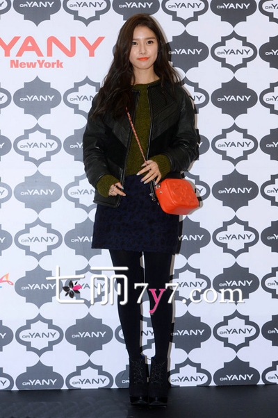 韩国人气女星金素恩的这款橘色迷你小包包,为整身暗色系的服饰增添了不少的亮点,凸显其可爱俏皮的以免,同时包包的颜色与唇妆的色彩一致,起到相互呼应的效果,利用微小的细节凸显出精致之处。