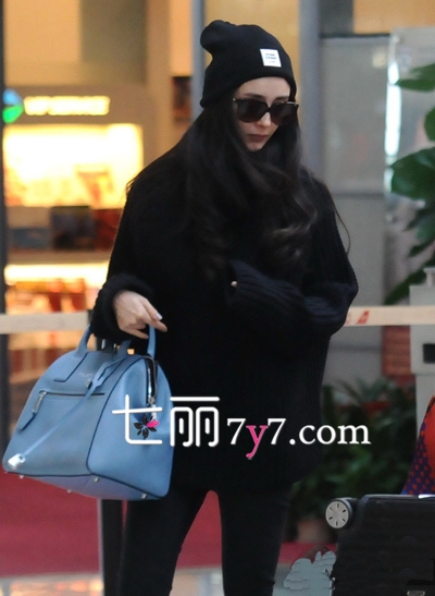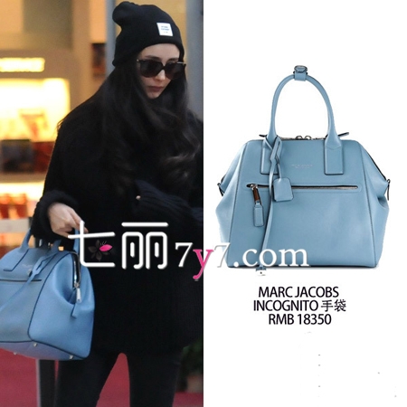 一身全黑的LOOK,让这位辣妈显得有些酷酷的,为了打破这份冬日里的酷劲,杨幂手挎一款Marc Jacobs Incognito系列大号蓝色手袋,天蓝色的清爽气质掩盖了这全黑造型的压抑感,让辣妈即可变得甜美起来。