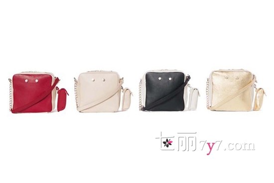 此款包包的一个型号、多种颜色选择,可根据自己的心情来挑选,裸色、红色、透明、耀眼的口红,总有一款包包是符合的。包包正方形的外观,真皮制作,正面镶有两颗金属扣子,肩带以金属链条的皮革,展现出Lipstick包包特有的品牌标志。
