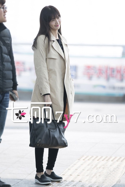 身穿经典的米色风衣配黑色紧身裤的林允儿,有种时尚干练的感觉,而搭配一个黑色的手提大包,却给人一种很帅气的感觉,同时展现出清纯女神个性的一面,给人与众不同的气质。